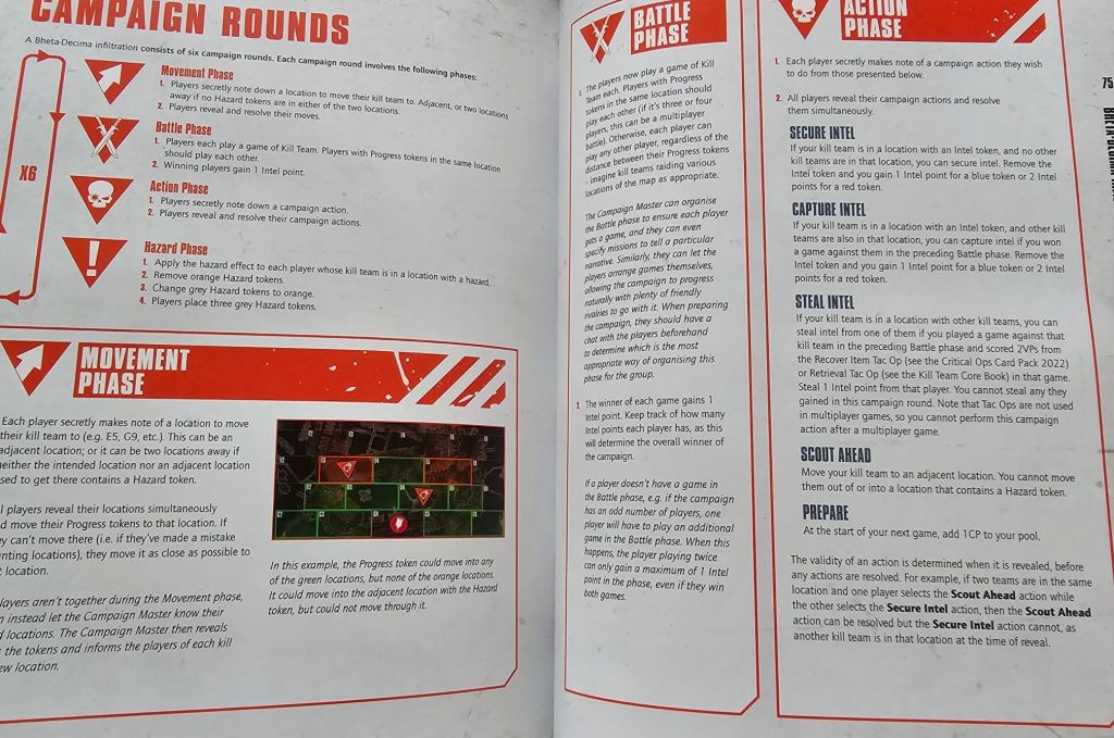 Inside the Salvation rulebook you get more narrative rules for your narrative campaigns and games for Kill Team. You get a huge map for your campaigns as well as expanded narrative rules representing the new season and terrain. It’s all quite comprehensive and a great continuing expansions we’ve been receiving for the narrative side of Kill Team.
