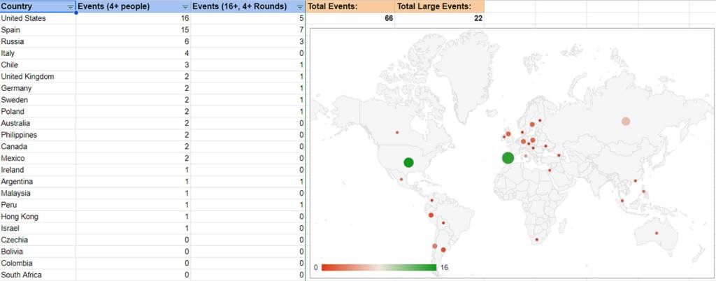 One main good point is that we are now seeing even more events and players! America has also claimed the crown for most monthly events and we see more countries again every month which is all great to see!